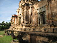 Thommanom and Chau Saytevoda. These smallish temples are on opposite sides of the road, just outside the Victory Gate of Angkor Thom. Chau Saytevoda, in particular, is in a pretty bad state of ruin - pieces everywhere. It's an amazing process to reconstruct and restore the temples. They figure out the layout, then figure out where every stone fits into the structure. The stones are then numbered so that they can be put in the proper place - a